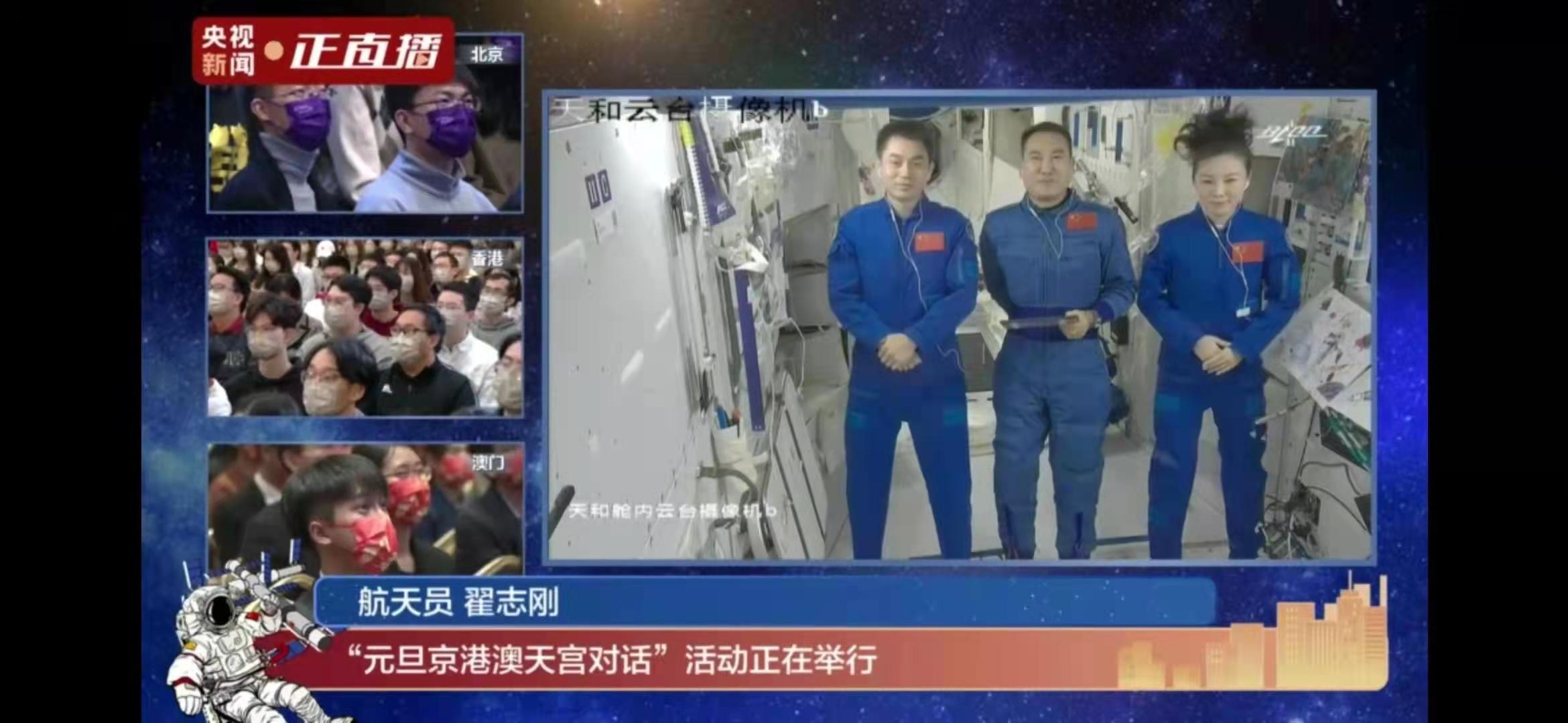 的师生代表与来自香港、澳门的清华学子共同参与“京港澳天宫对话”活动,与航天员和航天科技工作者进行了一场仰望星空的“天宫对话”。活动在京港澳分别设置三个会场,与天宫空间站进行实时连线互动。北京主会场设在中央广播电视总台演播室,现场由央视主持人康辉主持。清华大学副校长杨斌、007足球比分网