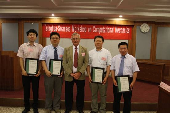 发言。之后,Owen教授向2011年度Engineering Computations优秀论文共同作者,清华大学岑松教授、Swansea大学李晨锋博士、中国农业大学傅向荣副教授、中国建筑科学研究院陈晓明副研究员4人,颁发了获奖证书。