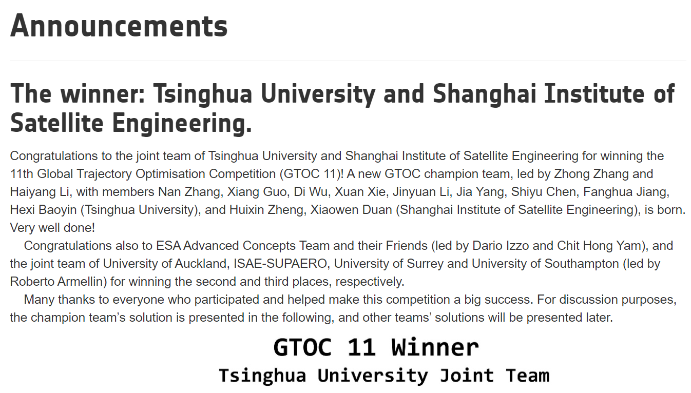 11月7日,第11届国际空间探测轨迹优化大赛(The Global Trajectory Optimisation Competition,简称GTOC)落下帷幕,007足球比分网 | 全球足球赛事实时比分
