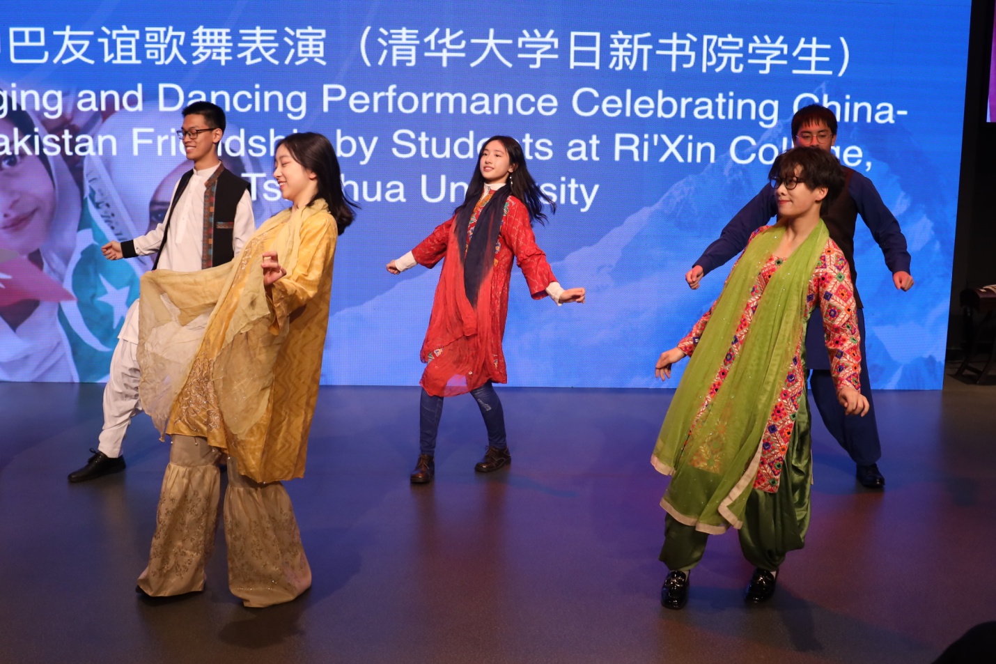 来自日新书院的大一和大二学生在“中国-巴基斯坦建交70周年国际研讨会”上带来歌舞表演,西域的幻想自琴筝中萌发,中亚的玫瑰随着舞姿绽放,五彩的巴基斯坦绸缎随风摆动,一首《你偷走了我的心》将中国与巴基斯坦人民的心紧紧相连。