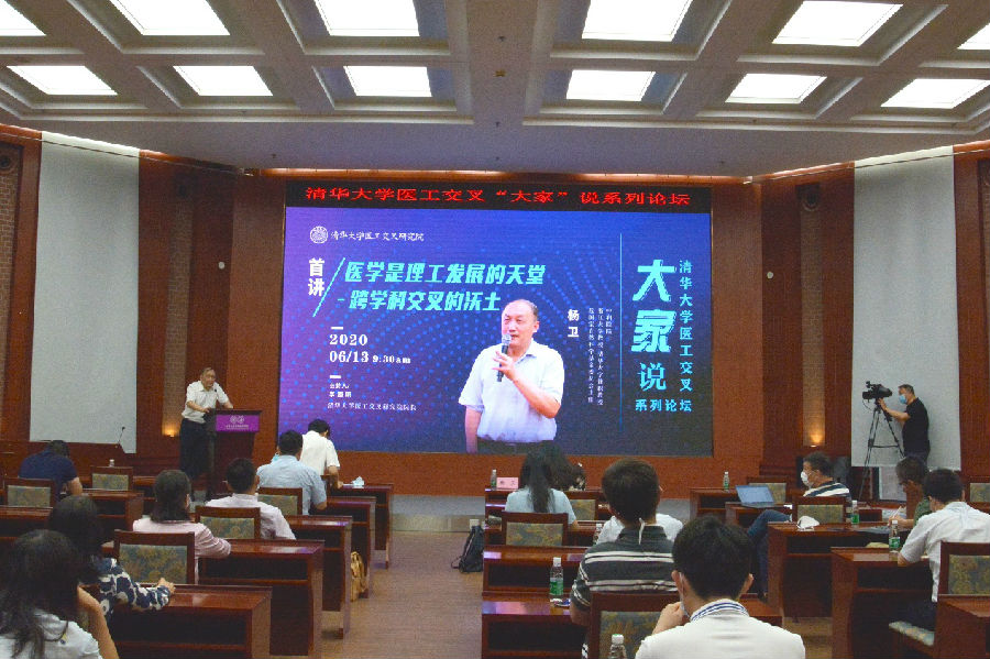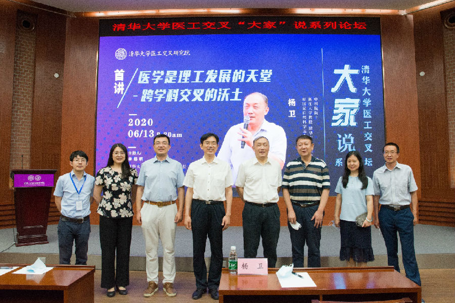 6月13日上午,由清华大学医工交叉研究院主办的“医工交叉‘大家’说”系列论坛迎来开篇之讲。中科院院士、清华大学双聘教授、国家自然科学基金委员会原主任杨卫作为首讲嘉宾来校交流,发表题为“医学是理工发展的天堂——跨学科交叉的沃土”的演讲,介绍医学与各理工学科交叉研究的热点领域和前沿技术。400余名从事相关研究的师生通过现场和线上会议形式参与交流,累计超过100万名观众在各大直播平台同步收看。论坛由清华大学医工交叉研究院院长李路明主持。