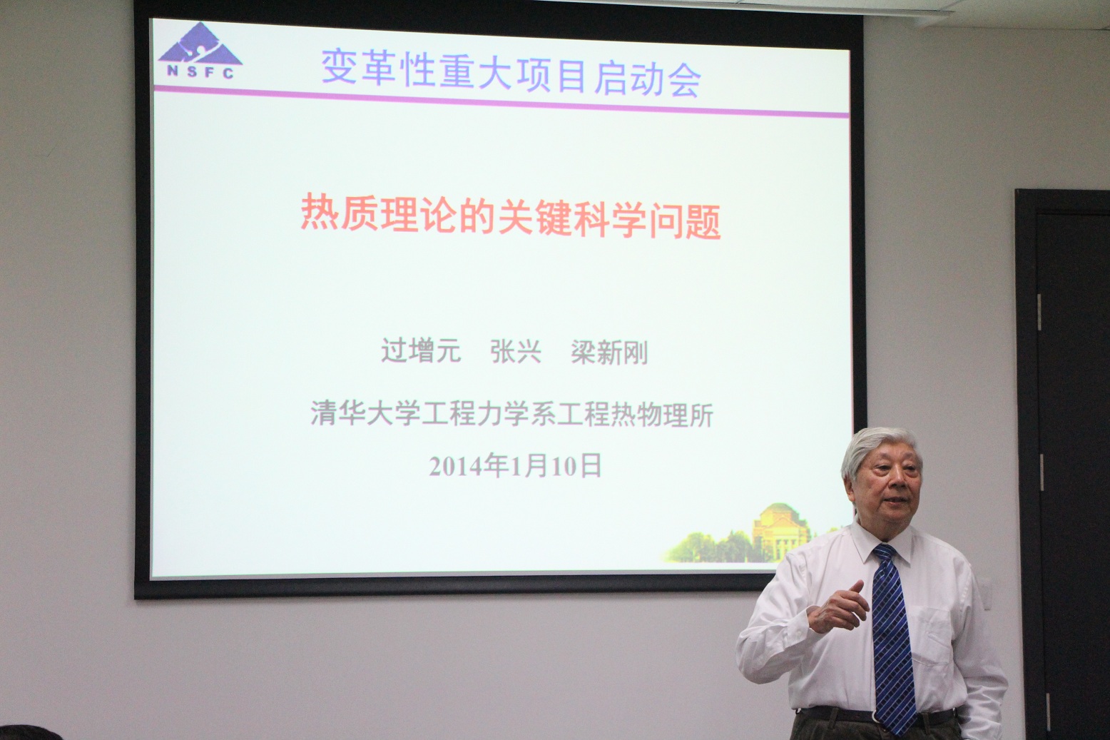 项目负责人过增元院士和张兴教授详细汇报了项目的立项背景、主要研究内容和研究计划。发展比较成熟的热学学科,现在面临着两方面挑战:世界性能源短缺要求能提高能源利用效率的新理论和新技术:高新技术中发现传热学中的基本定律-傅立叶导热定律不再成立, 难以进行热分类和热设计。“热质理论的关键科学问题”正是以解决提高能效和高技术发展中的传热瓶颈问题为主要背景,提出了热的“能丶质”二象说,即热具有能量和质量的双重属性,通过引入热质和火积等热学新概念,建立热量传递的普适导热定律和优化热量传递过程的火积耗散极值原理,可以应用于描述极端条件下的热传递行为和优化热量传递过程,目前火积理论和已有的熵理论之间的差异还正在进行学术争论。