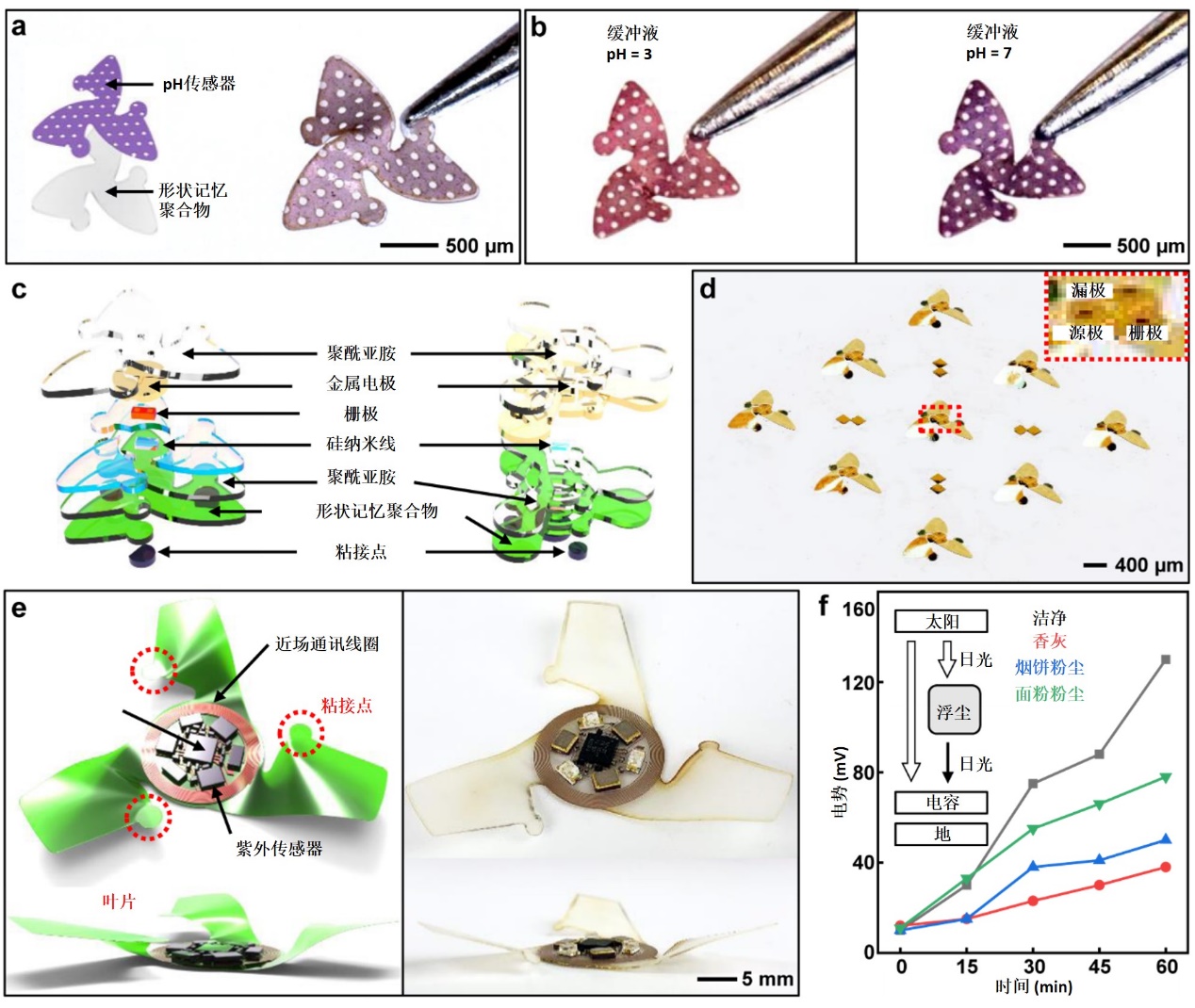清华大学张一慧课题组与美国西北大学约翰•罗杰斯(John A. Rogers)、黄永刚课题组、伊利诺伊大学香槟分校莱昂纳多·查莫罗(Leonardo P. Chamorro)课题组合作,以风传种子为灵感,设计了一种屈曲力学组装的三维微电子飞行器,实现了微电子器件被动、长时间、远距离飞行。
