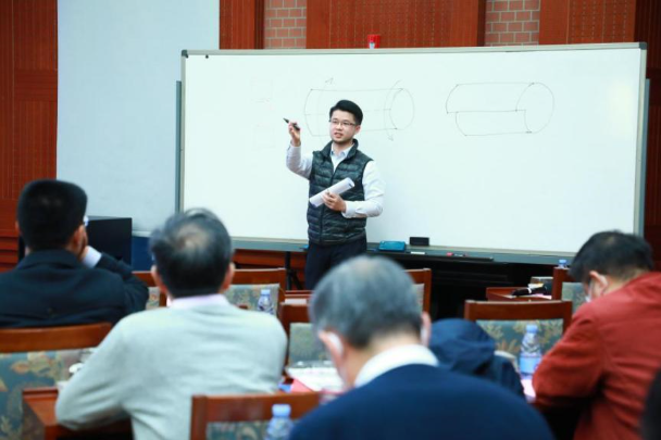 优秀新生导师一等奖的教师邵玥试讲了“圆轴扭转的受力与变形分析”一课。试讲结束后,薛克宗、薛明德、郑丽丽、刘彬、冯西桥等多位教授对教学内容、教具选取、例题材料等方面指出问题,并基于长期的教学经验提出了有效的改进建议。