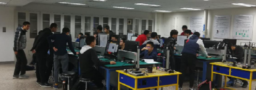 实验室建有20个标准实验台工位,提供独立电源,机械加工和焊接操作台4个。