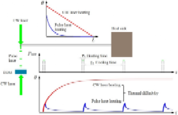 利用聚焦脉冲激光和连续激光分别加热样品并测量局部温度,建立一维非稳态和稳态导热方程,消去激光吸收系数,直接获得样品的热扩散率。